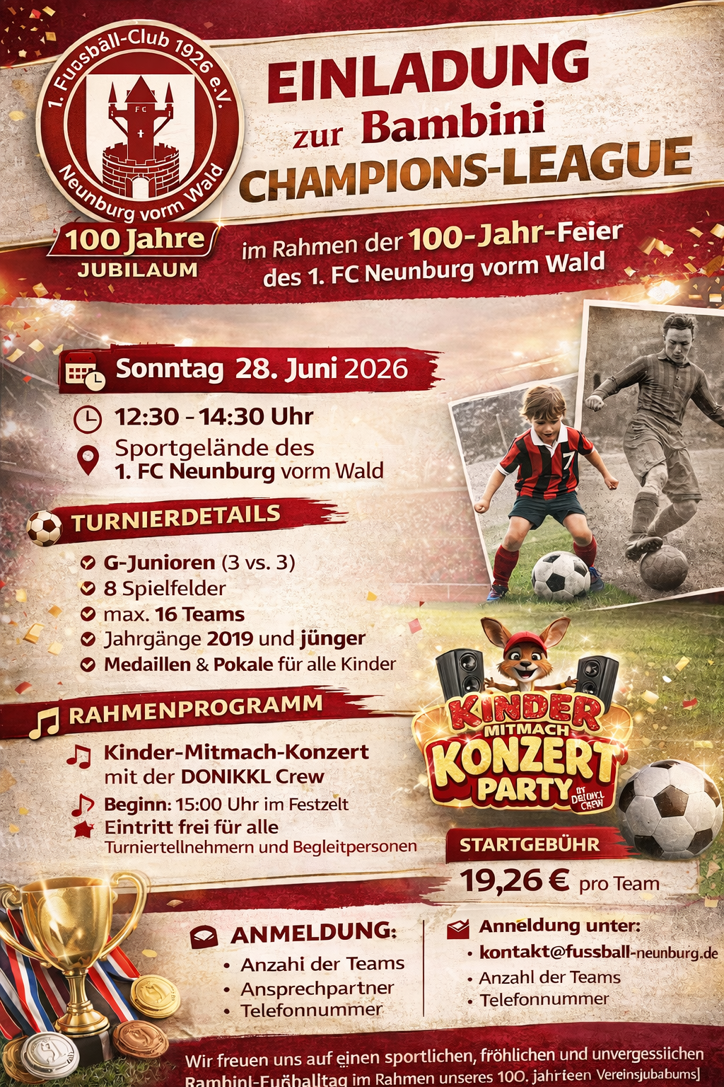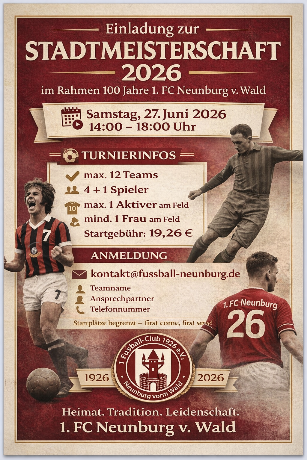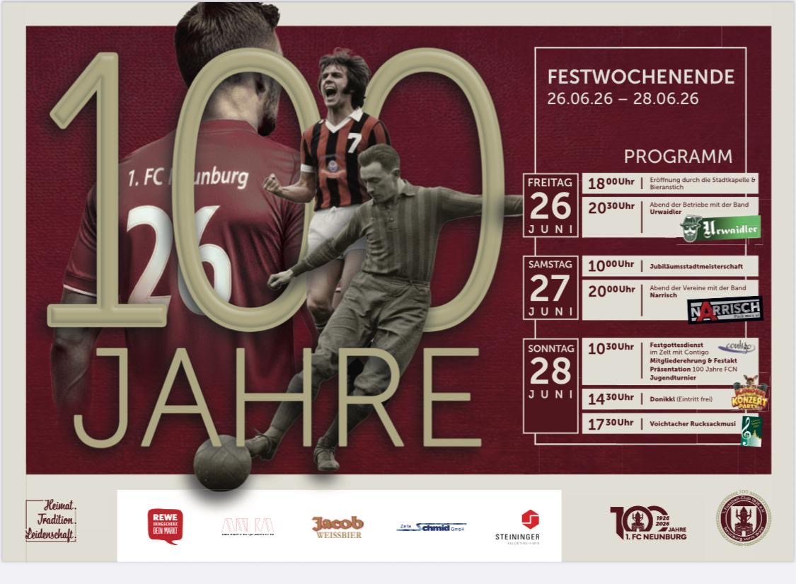 100 JAHRE 1. FC Neunburg v. Wald26. bis 28. Juni 2026 |